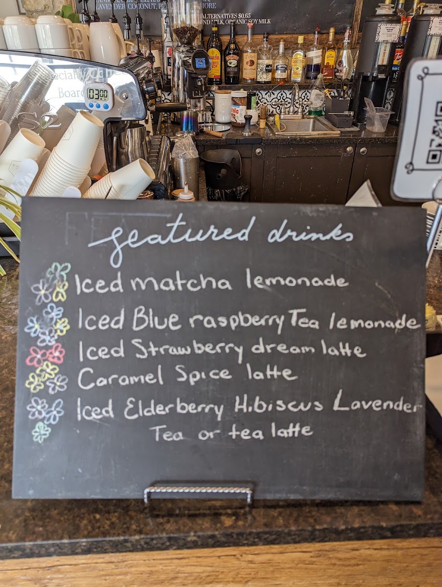 Ceremonial grade matcha with steamed milk. Sweetened with liquid cane sugar. Can sub for sugar free sweetener.