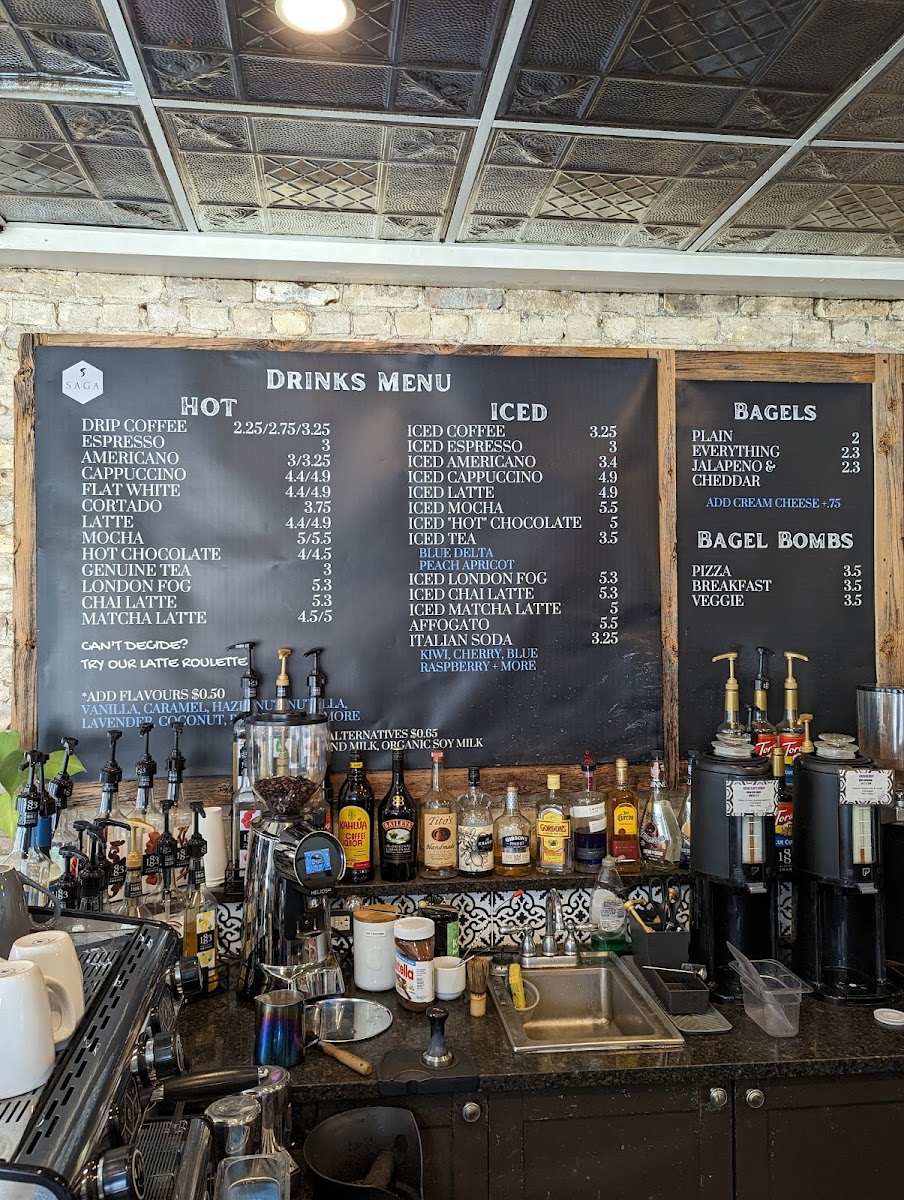 The bagels at Saga are a satisfying snack, with options like Jalapeño & Cheddar, Everything Bagel, and Plain. If you're after something a bit more substantial, consider the Bagel Bombs, which come in Breakfast, Pizza, and Veggie varieties.